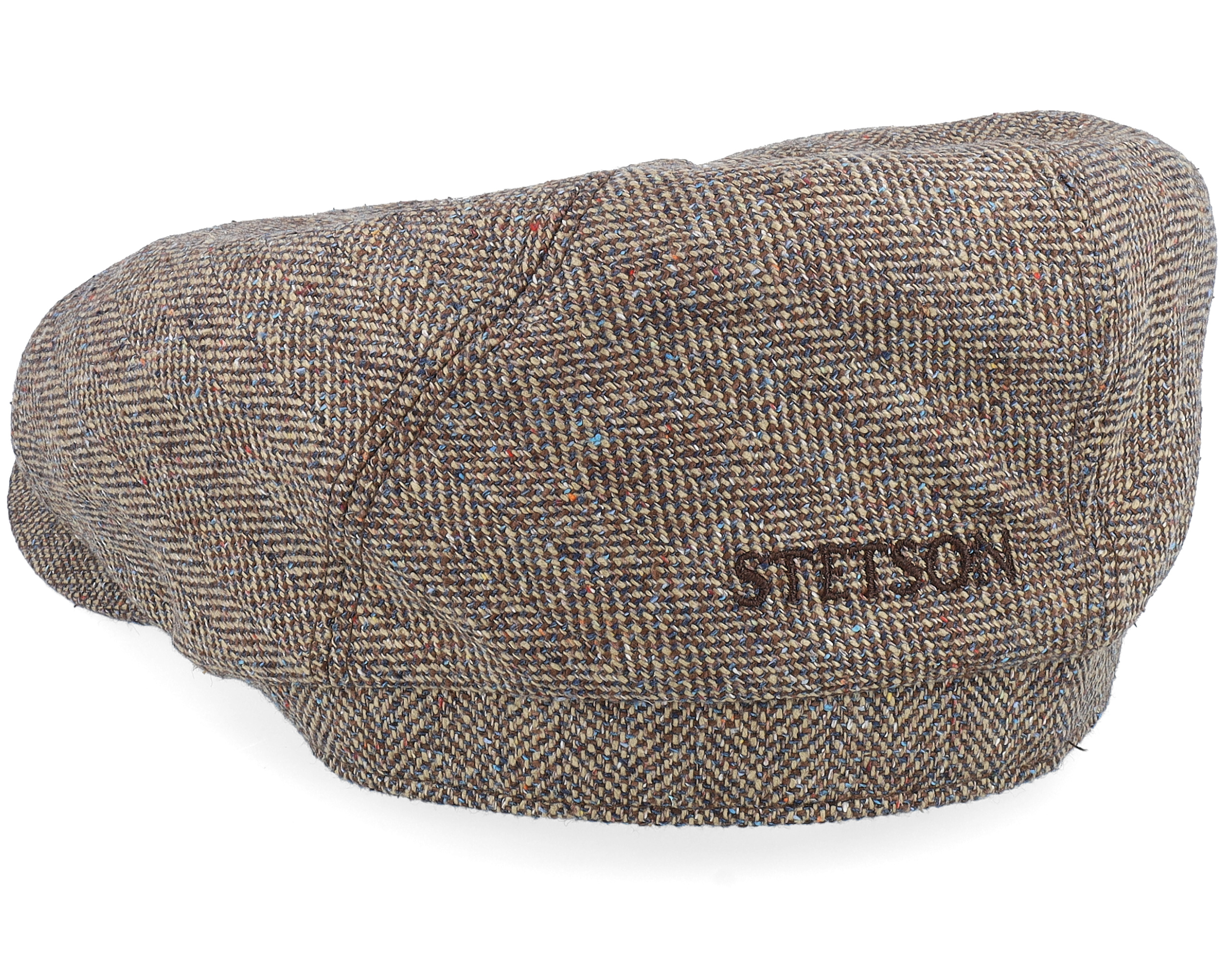 6-panel Cap Silk Brown Herringbone Flat Cap