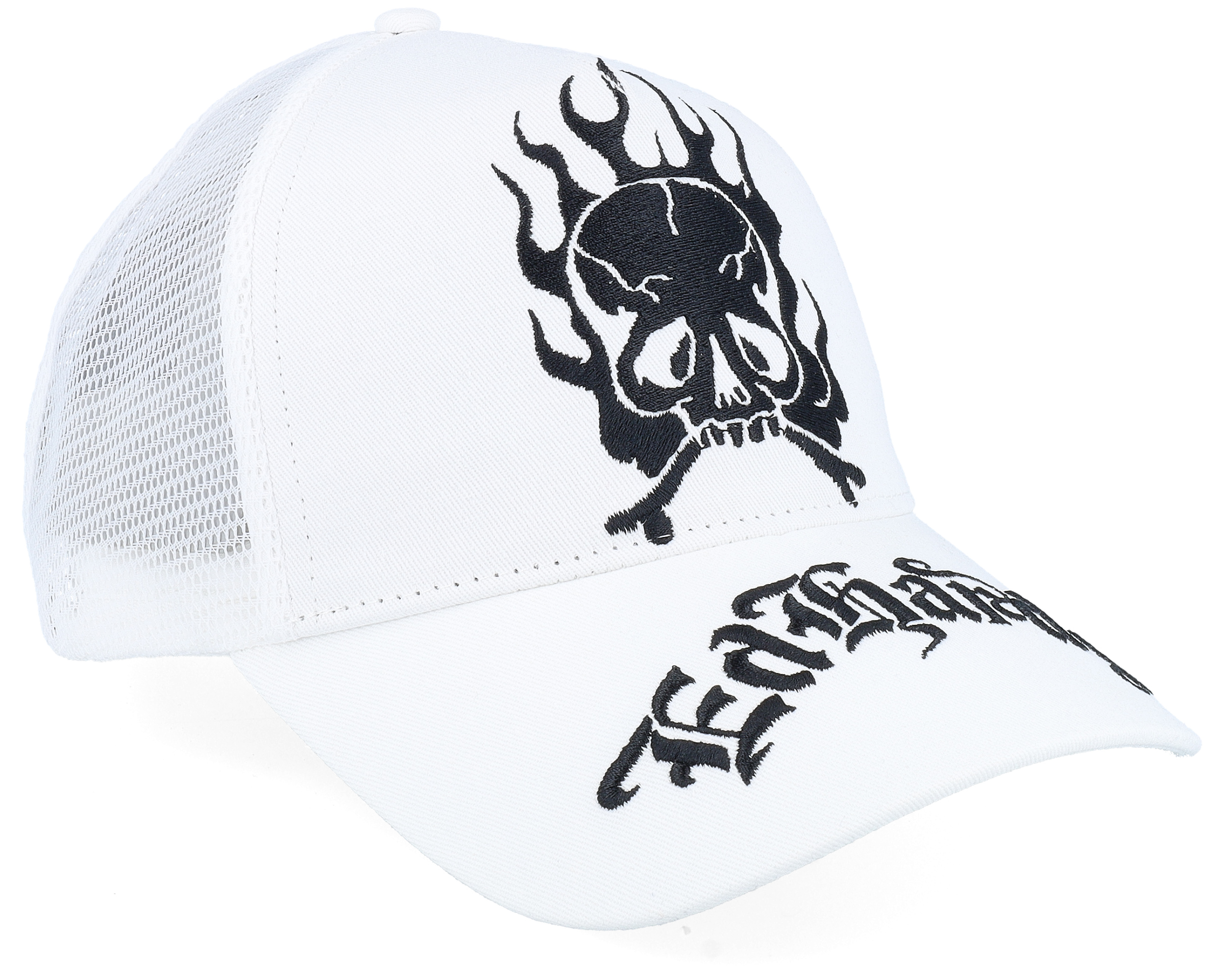 Gothic Skull In Flames White/White A-Frame Trucker
