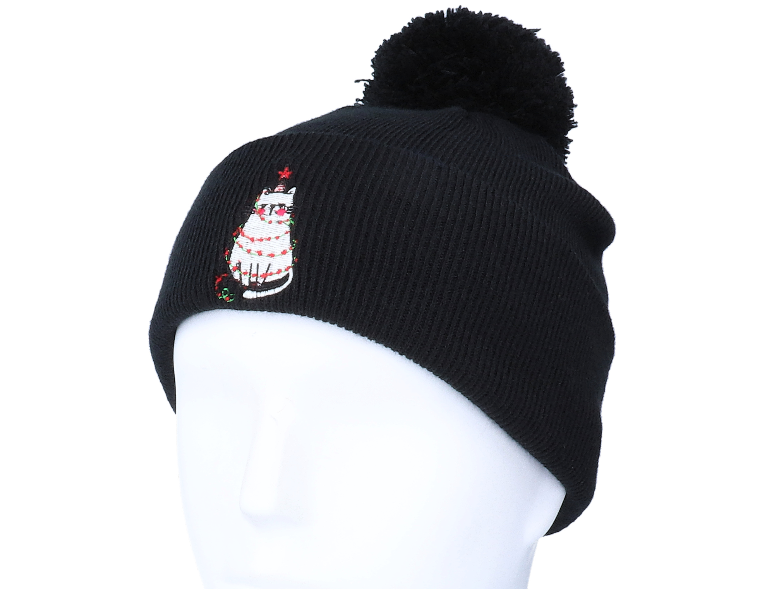 Kids Christmas Tree Cat Black Pom Pom Beanie - Iconic